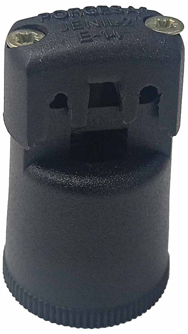 PORTALAMPARA DE E14 PARA GUIRNALDA CON SOPORTE COLOR NEGRO. DE 4CM DE LARGO. PRECIO POR UNIDAD.