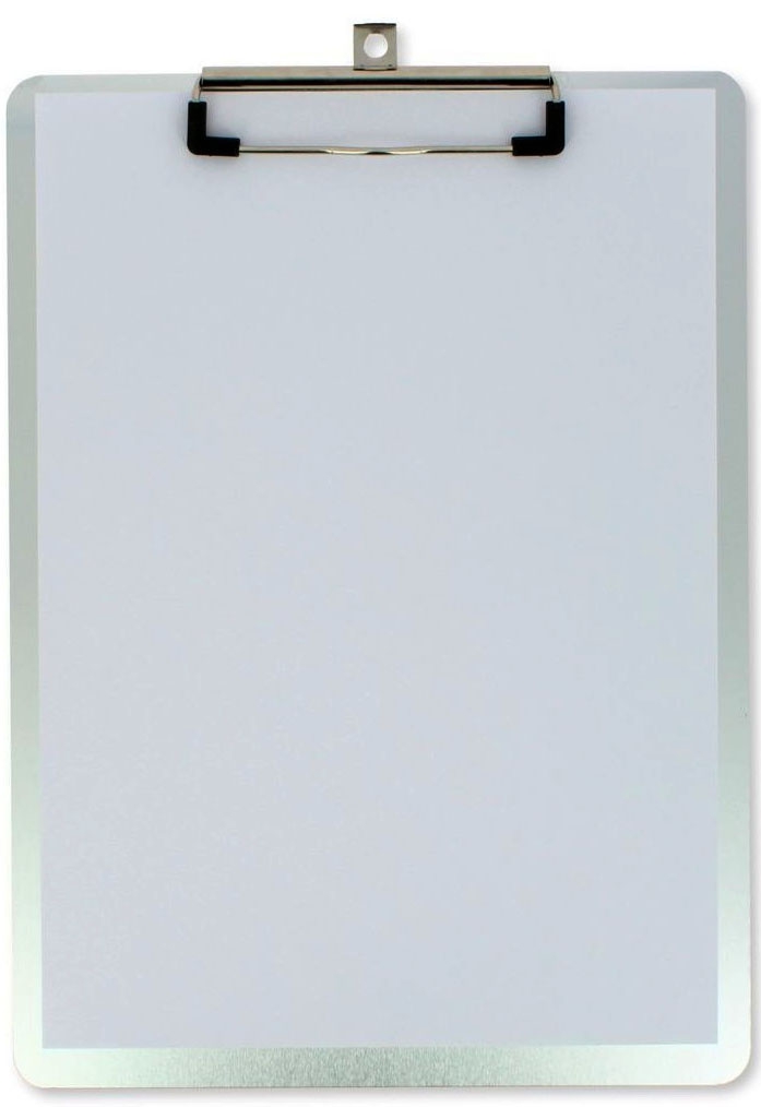 Sujetapapeles de aluminio, tabla de aluminio con cantos redondeados y pinza de alta presión.