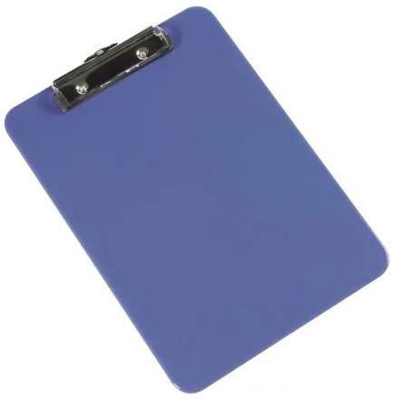 Fabricado en plástico rígido, con presilla metálica de gran resistencia para una perfecta sujeción del papel. Superficie lisa para facilitar la escritura. Color azul. Formato DIN A4.