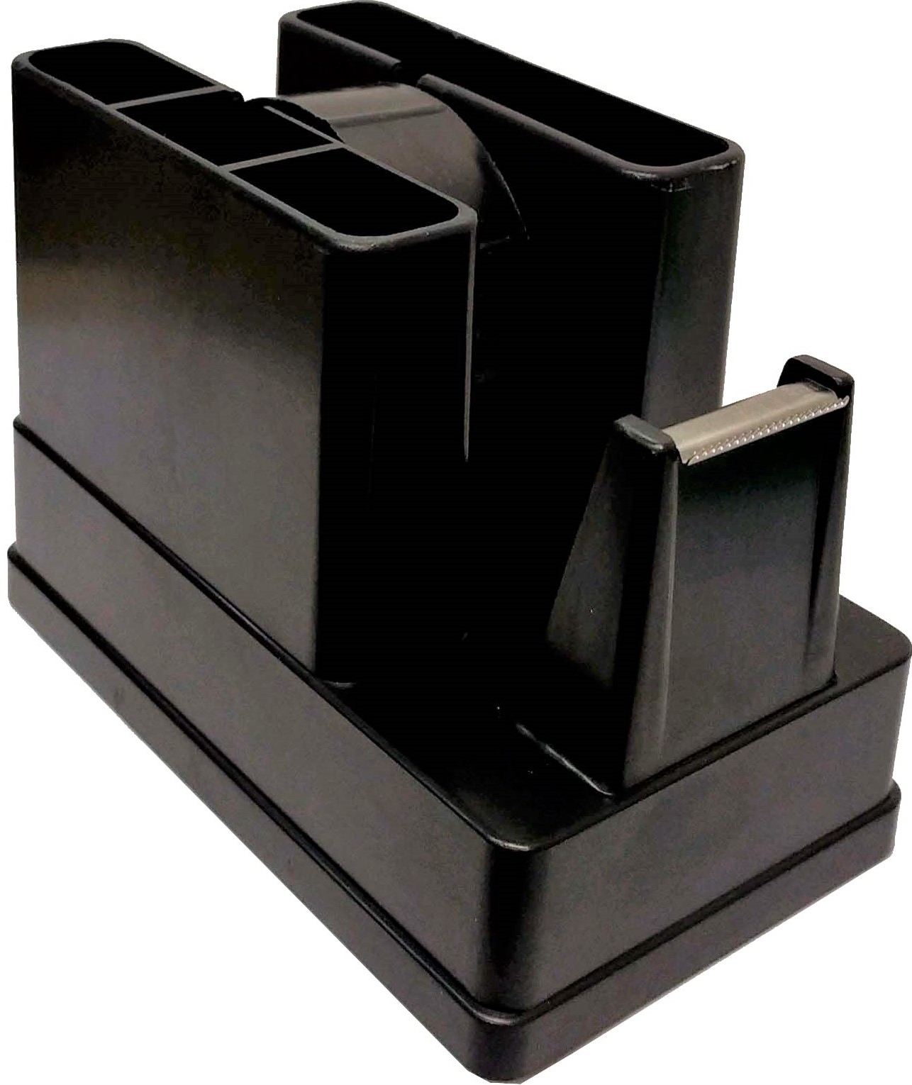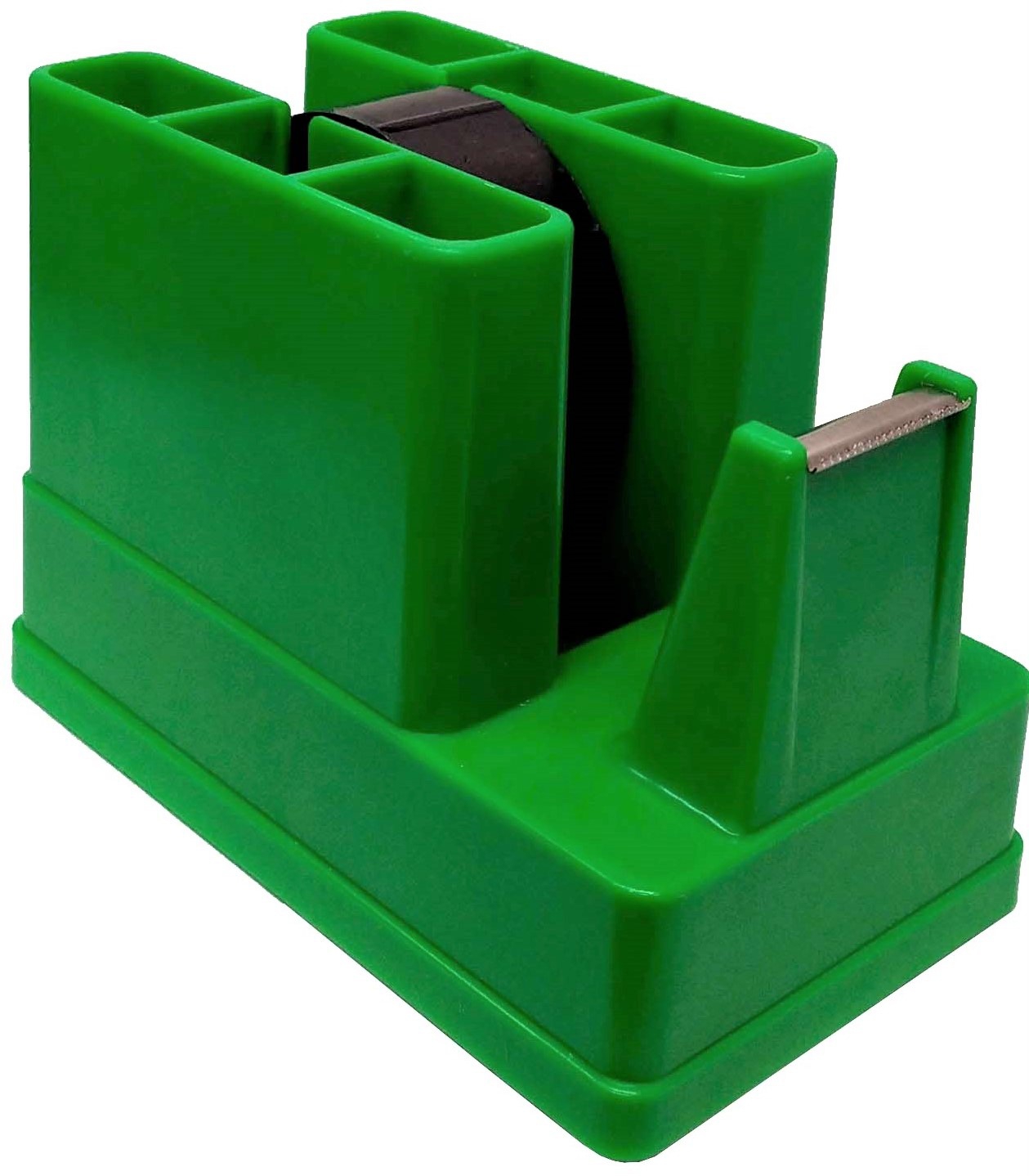 PORTAROLLOS PARA CINTAS ADHESIVAS GRANDES Y PEQUEÑAS CON PORTALAPICES PARA SOBREMESA. DE PLASTICO RIGIDO Y DIMENSIONES 11X15X8CM.