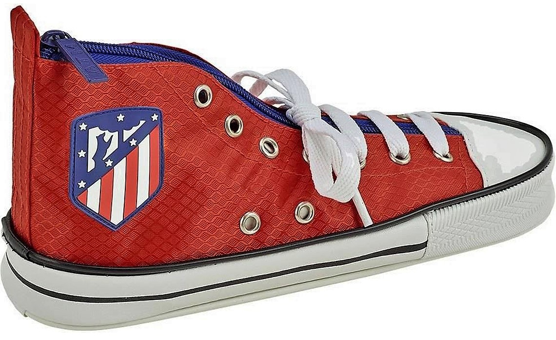 Estuche Atlético de Madrid Portatodo del Atleti con forma de bota deportiva con suela de goma Producto oficial Atlético de Madrid fabricado por Safta. Dimensiones: 24 x 12 x 7cm. PRECIO POR UNIDAD.