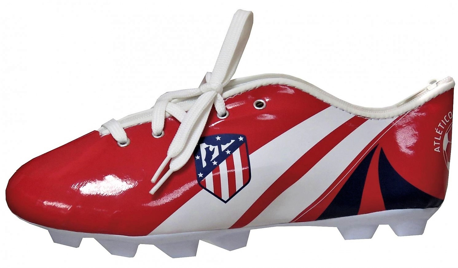 Portatodo con forma de bota Atletico de Madrid. Medidas: 23 x 7 x 8 cm. PRECIO POR UNIDAD.
