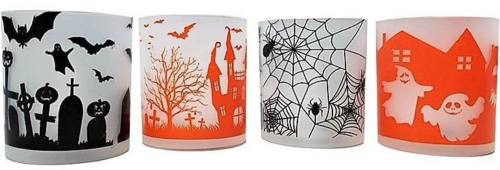 PORTAVELAS DE PLASTICO PARA HALLOWEEN. 4 MODELOS DIFERENTES. VELA DE LED. FUNCIONA CON 1 PILA CR2032. CONSULTAR DISPONIBILIDAD DEL MODELO. PRECIO POR UNIDAD.
