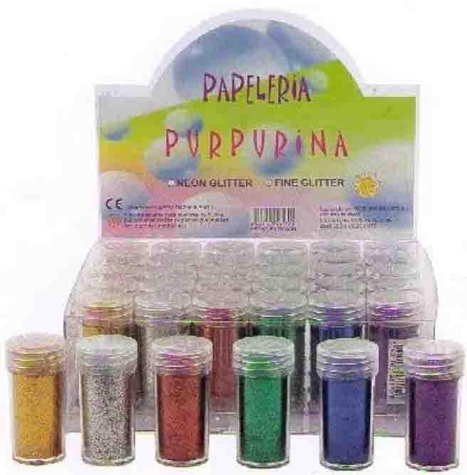 PURPURINA FINA EN TUBO. CON 6 COLORES METALIZADOS SURTIDOS.