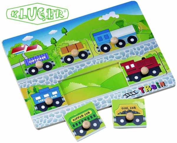 Ensarte de madera con pivotes para facilitar el agarre. Con dibujos de trenes serigrafiados en vivos colores que ofrecen una larga durabilidad, son 7 piezas. Medidas:30 x 21,5 cm. Marca Kluger. Referencia D11017.