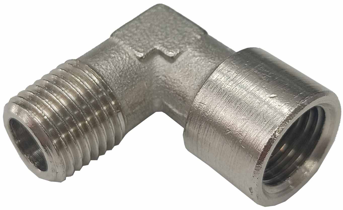 RACOR PARA AIRE EN CODO DE 90º DE 1 MACHO X 1 HEMBRA DE 1/4″ ROSCADOS NIQUELADO