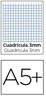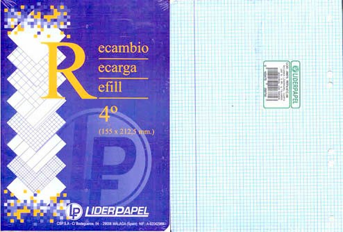 Recambio liderpapel de cuarto A5 de 100 hojas de 60g/m2 con cuadro de 3mm. con margen y de 6 taladros.