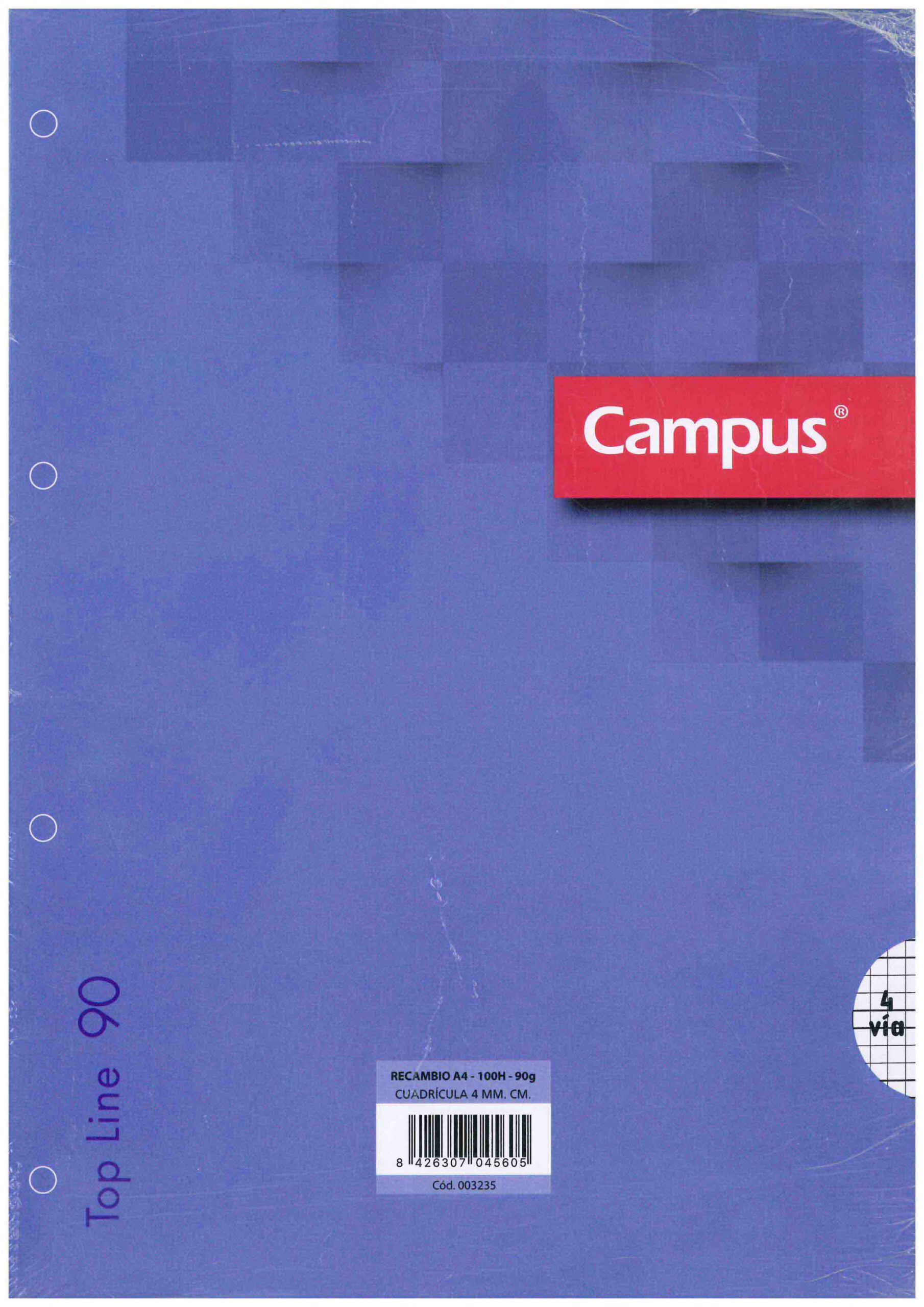 RECAMBIO DE CUADRICULA DE 4MM TAMAÑO A4 DE 90GRS. CON 100 HOJAS Y CUATRO AGUJEROS IMI LAMELA CAMPUS. PRECIO POR UNIDAD.