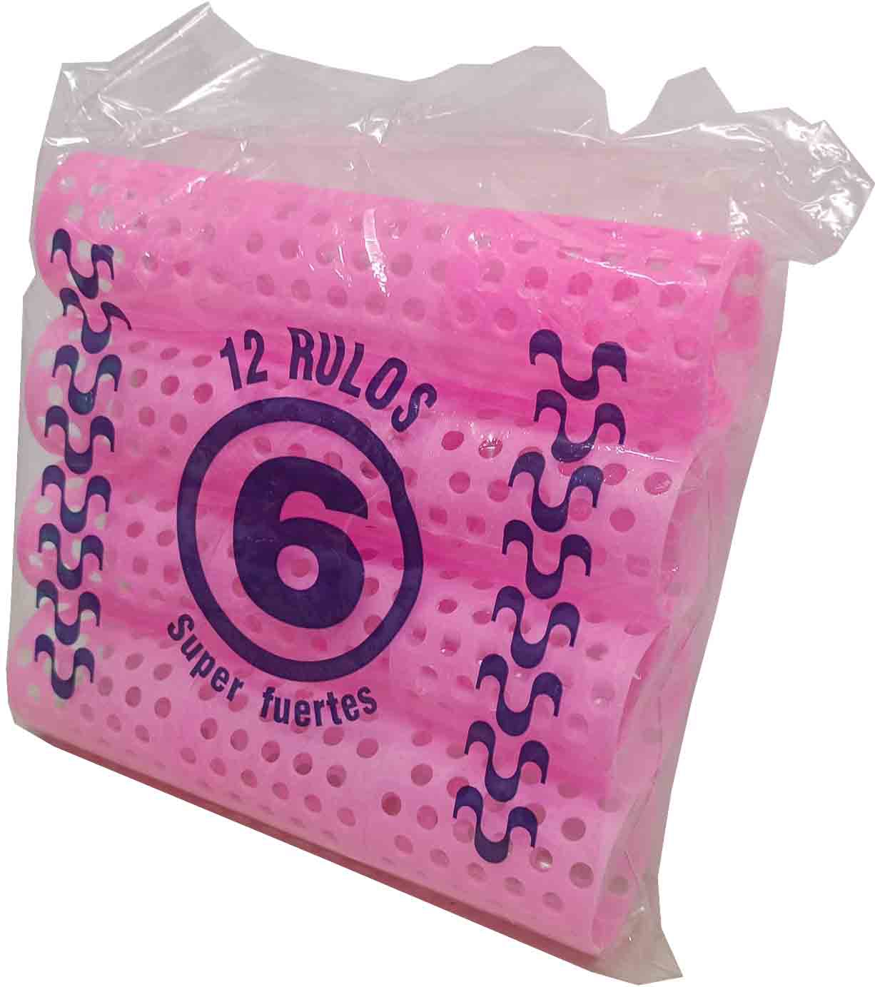 RULOS PARA PELO DEL Nº 6 SUPER FUERTES DE PLASTICO ROSA TRANSLUCIDO DE 41MM. EN BLISTER DE 12 UNIDADES.