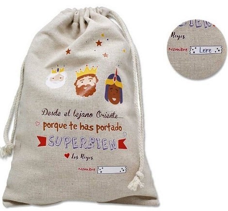 SACO REGALOS REYES MAGOS GRANDE. APROX 50X80CM. PERSONALIZABLE CON TU NOMBRE.