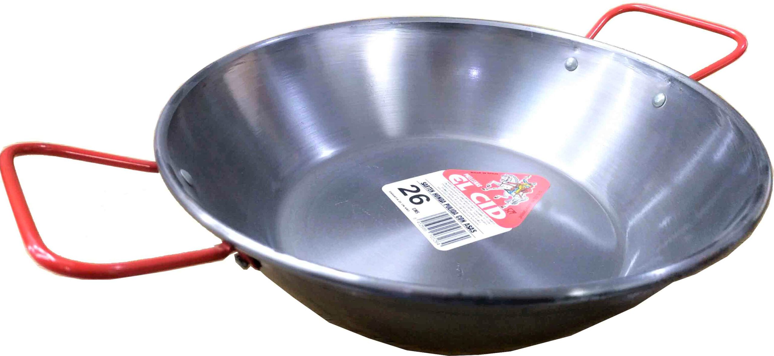 SARTEN DE HIERRO PULIDO HONDA DE 26CM. CON DOS ASAS MARCA EL CID. Antes de usar por primera vez hervir con agua