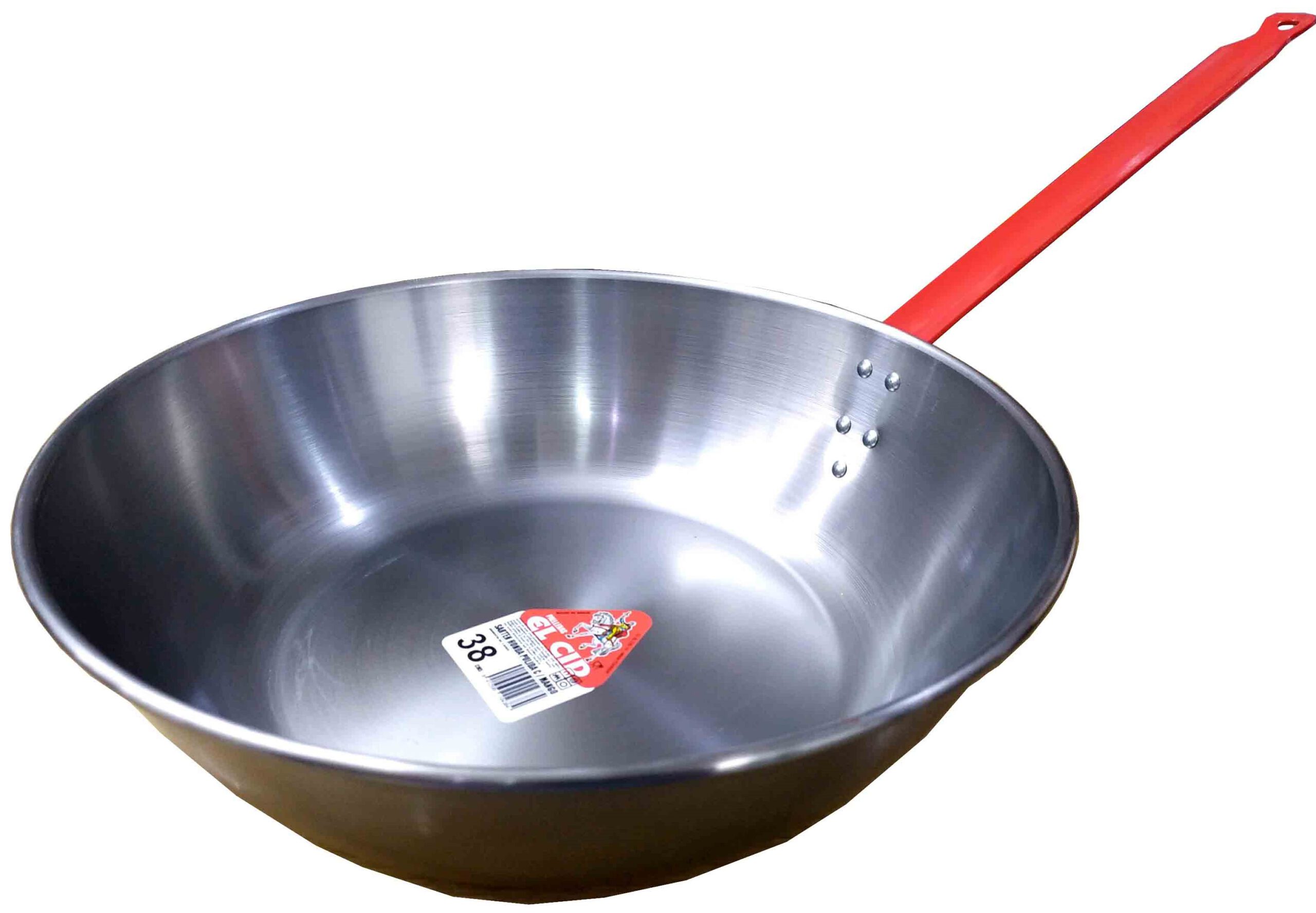 SARTEN DE HIERRO PULIDO HONDA DE 38CM. CON MANGO MARCA EL CID. Antes de usar por primera vez hervir con agua.