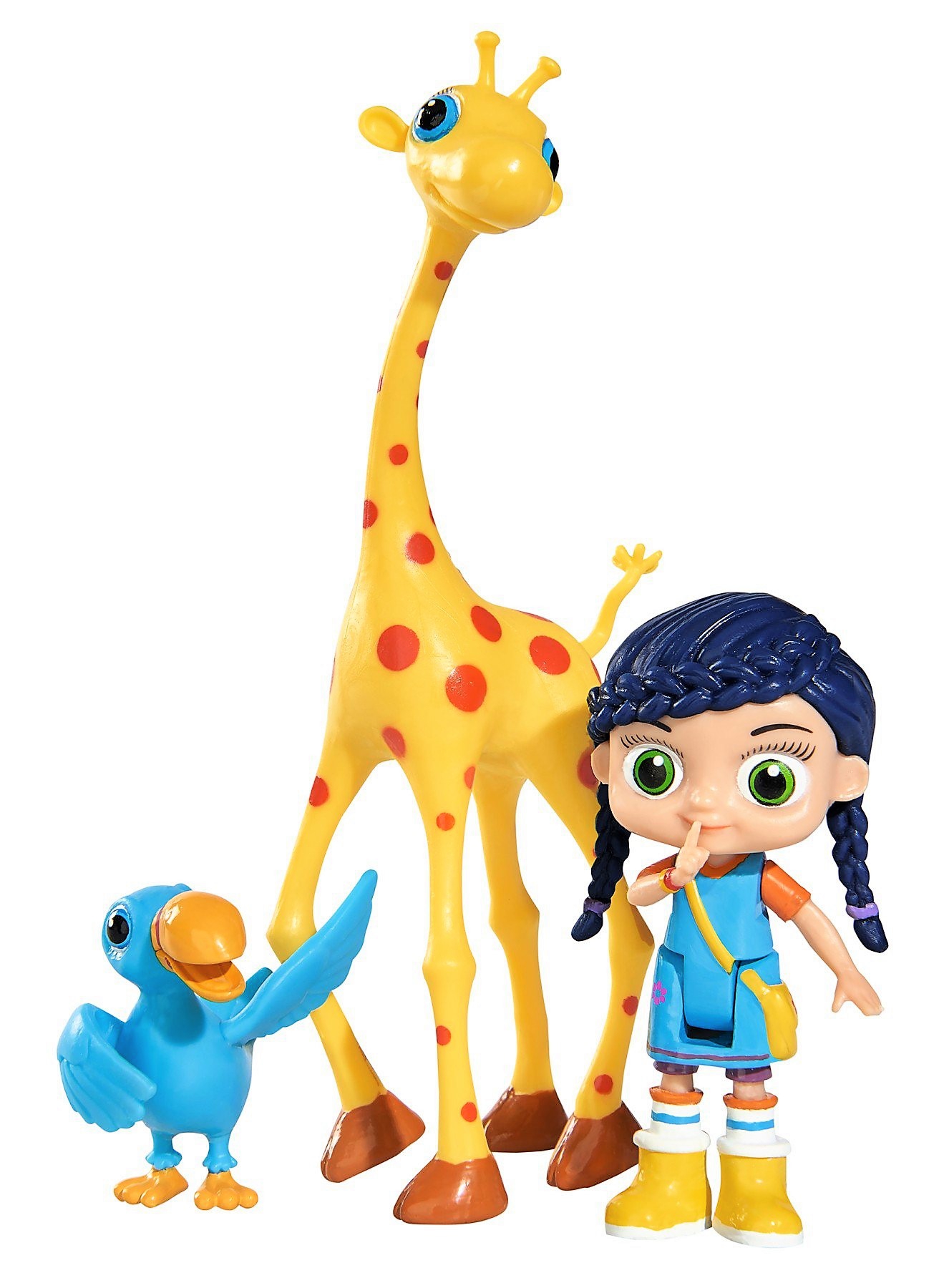 Pack con 3 figuras. Figura de Wissper articulada 7.5 cm, figura de la jirafa Gertie de 14 cm y figura del loro Otis de 4 cm. Para niñas a partir de 3 años.