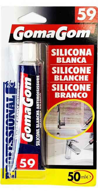 Con la SILICONA BLANCA GomaGom evitará que se produzca moho en los lugares donde haya sido aplicado. Permanece siempre elástica y no se agrieta con el paso del tiempo. Su estudiada composición la hace especialmente resistente en lugares muy castigados por el exceso de agua o humedad.