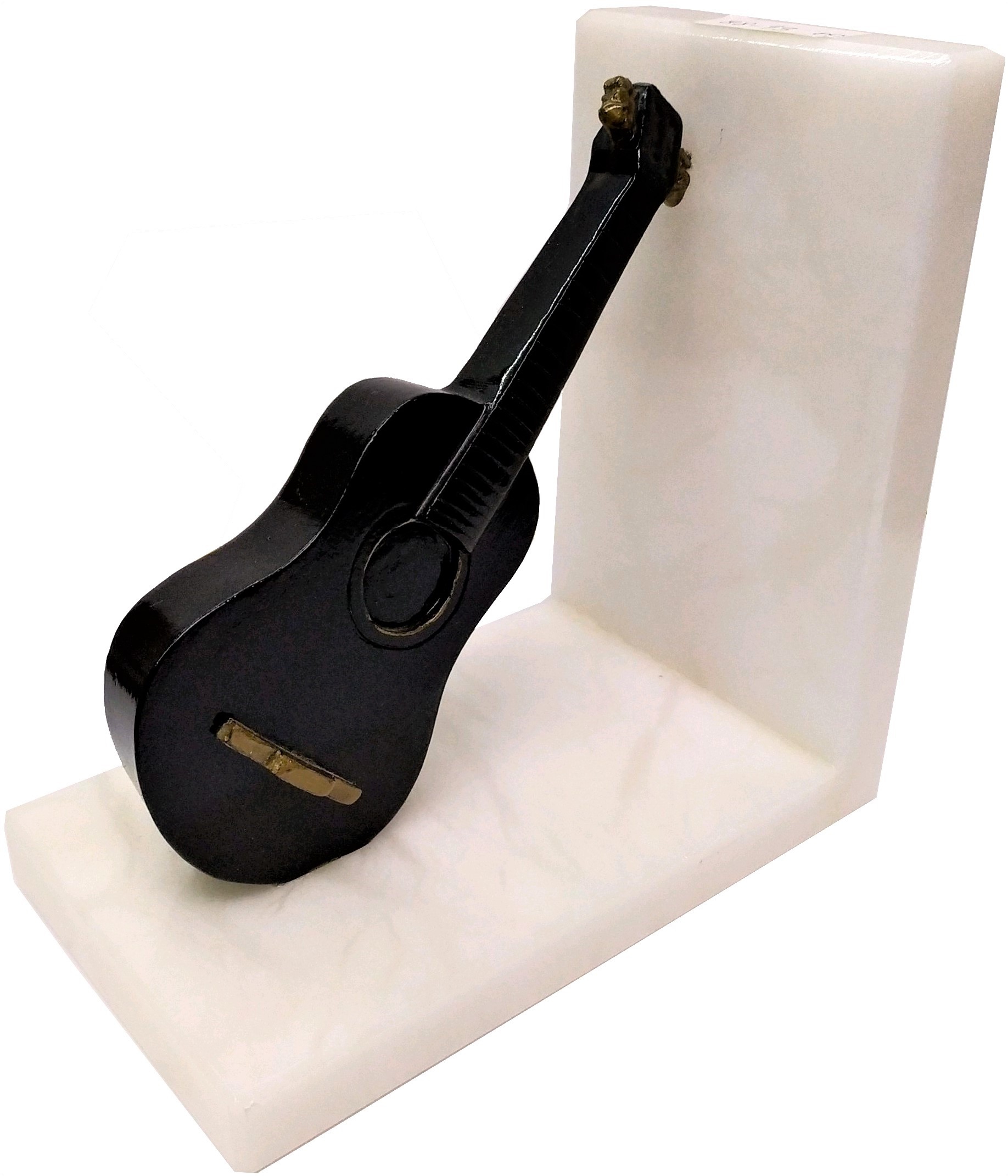 SUJETALIBROS DE 1 UNIDAD DE GUITARRA NEGRA Y ESCUADRA BLANCA DE ALABASTRO.