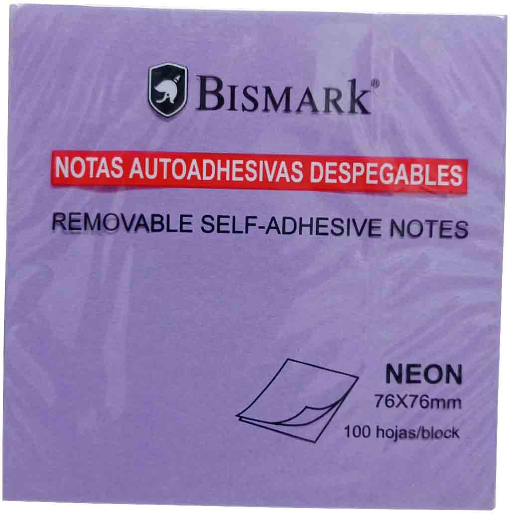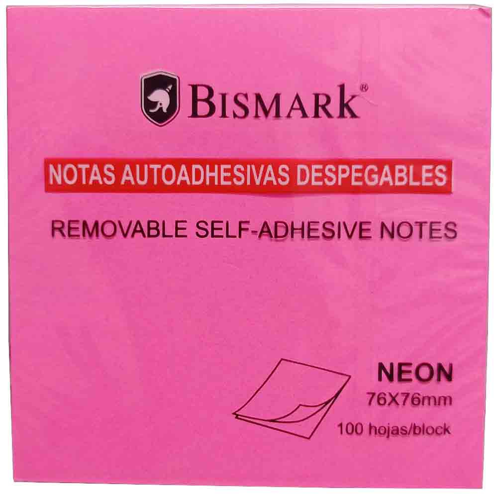 TACO DE NOTAS AUTOADHESIVAS DESPEGABLES DE QUITA Y PON DE 76X76MM Y 100 UNIDADES DE COLORES NEON BISMARK.
