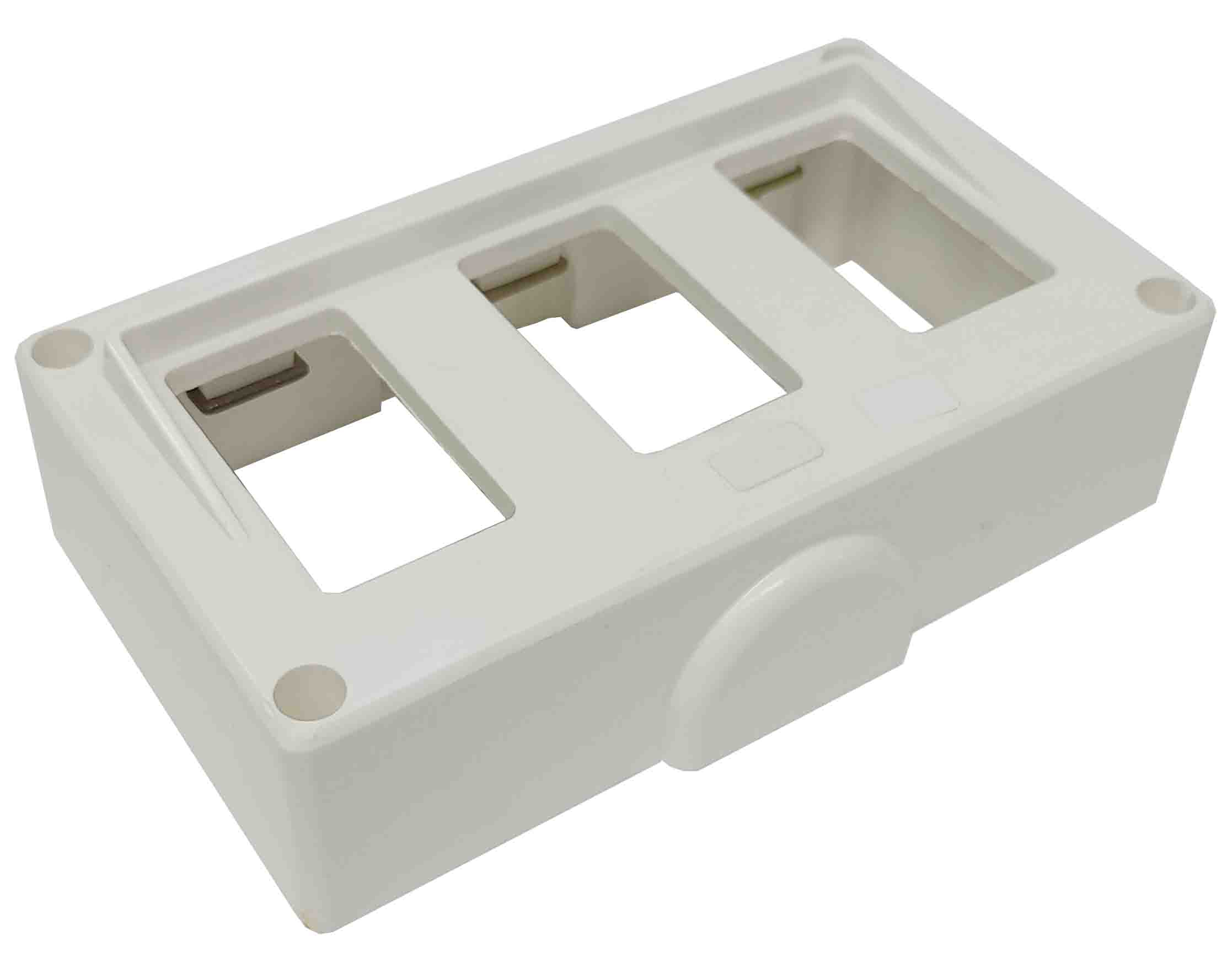TAPA DE CAJA DE SUPERFICIE DE 3 MECANISMOS DE COLOR BLANCO 16A. 380V. mide 14x9X4,50cm. EUNEA Nº 3102M-B.