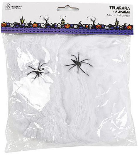 TELA DE ARAÑA EXTENSIBLE DE 40GRS. DECORATIVA. BLANCA + 2 ARAÑAS DE MARKET SUPREM A9994.