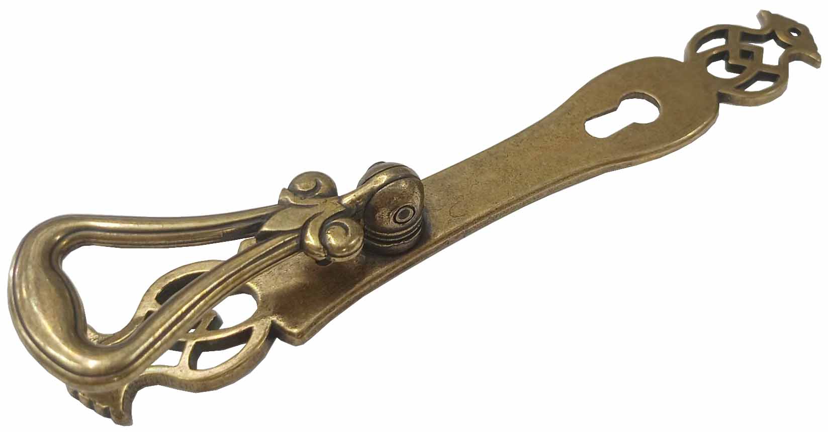 TIRADOR DE PENDULO CON ASA Y CON BOCA LLAVE, METALICO, CALADO, DE COLOR ORO VIEJO DE 15,50X3CM. 443222.