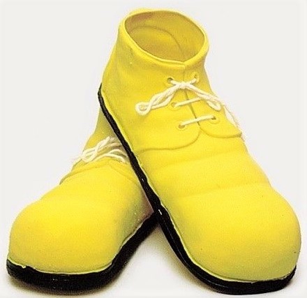 ZAPATOS DE PAYASO PARA CADETE AMARILLO DE LATEX Y CON CORDONES.