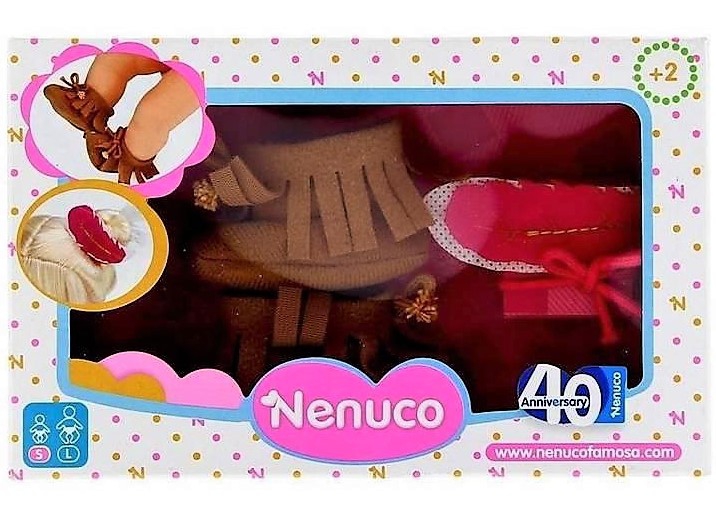 Zapatitos tipo patucos, para tu Nenuco de 35cm. Llevalo vestido a la moda como tu, con estos zapatitos de color marron y tambien incluye un accesorio para el cabello, todo de ultima tendencia. PRECIO POR UNIDAD.